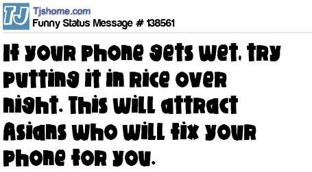 X says If your phone gets wet, try putting it in rice over night. This will attract Asians who will fix your phone for you.