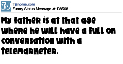 X My father is at that age where he will have a full on conversation with a telemarketer.