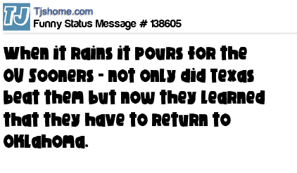 X says When it rains it pours for the OU Sooners - not only did Texas beat them but now they learned that they have to return to Oklahoma.
