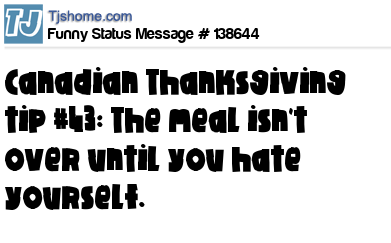 X Canadian Thanksgiving tip #43: The meal isn't over until you hate yourself.