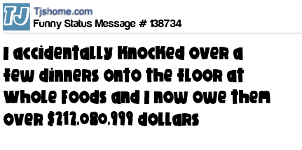 X I accidentally knocked over a few dinners onto the floor at Whole Foods and I now owe them over $212,080,999 dollars