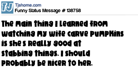 X says The main thing I learned from watching my wife carve pumpkins is she’s really good at stabbing things. I should probably be nicer to her.