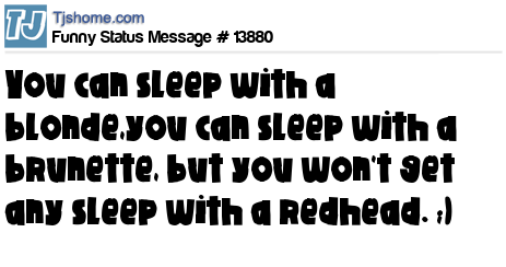 X says you can sleep with a blonde,you can sleep with a brunette, but you won't get any sleep with a redhead. ;)