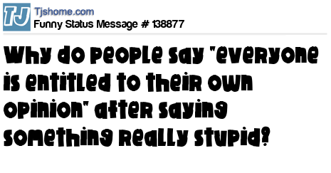 X says Why do people say "everyone is entitled to their own opinion" after saying something really stupid?