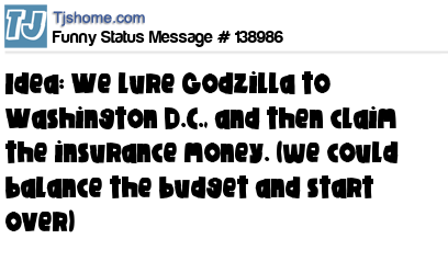 X Idea: We lure Godzilla to Washington D.C., and then claim the insurance money. (we could balance the budget and start over)