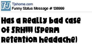 - # 111240 Suffering from a bad case of SRH. Sperm Retention Headache!!