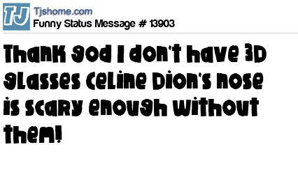 X Thank god I don't have 3D glasses Celine Dion's nose is scary enough without them!