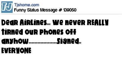 X Dear Airlines,,, We never REALLY tirned our phones off anyhow...................Signed,, EVERYONE