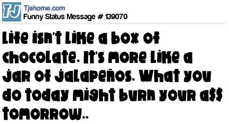 - # 38291 Life is less like a box of chocolate and more like a jar of jalapenos. What you do today, might burn your butt tomorrow.