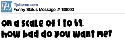 - # 82433 on a scale from 1-10, you're a 9 and I'm the 1 you need...
