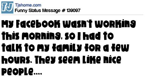 X says My Facebook wasn't working this morning, so I had to talk to my family for a few hours. They seem like nice people....
