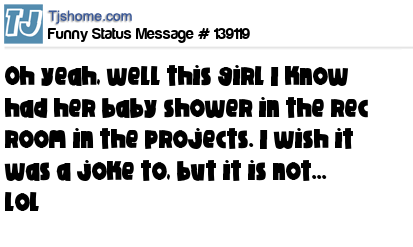 X says Oh yeah, well this girl I know had her baby shower in the rec room in the projects. I wish it was a joke to, but it is not... lol