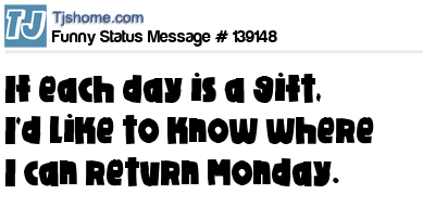 - # 89941 If each day is a gift, I'd like to know where to return for refund Mondays...