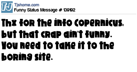X Thx for the info Copernicus, but that crap ain't funny. You need to take it to the boring site.
