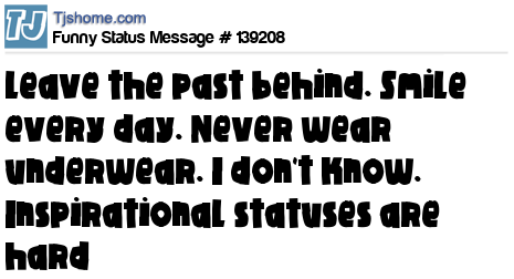 X says Leave the past behind. Smile every day. Never wear underwear. I don't know. Inspirational statuses are hard