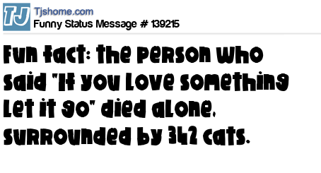 X Fun fact: the person who said "If you love something let it go" died alone, surrounded by 342 cats.