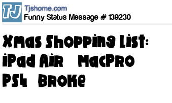 X says Xmas Shopping List: iPad Air ✓ MacPro ✓ PS4✓ Broke✓