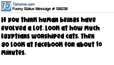 - # 169710 If you think human beings have evolved a lot. Look at how much Egyptians worshiped cats... Then go look at Facebook for about 5 minutes.