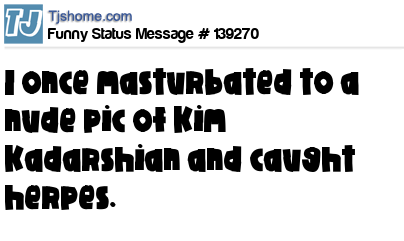 X says I once masturbated to a nude pic of Kim Kadarshian and caught herpes.