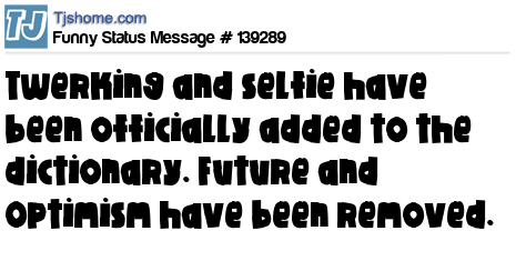 - # 136491 So I'm reading that "twerking" and "selfie" have been added to the dictionary. "Future" and "optimism" have been removed...