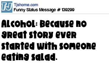 X says Alcohol: Because no great story ever started with someone eating salad.