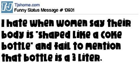 X I hate when women say their body is "shaped like a Coke bottle" and fail to mention that bottle is a 3 liter.