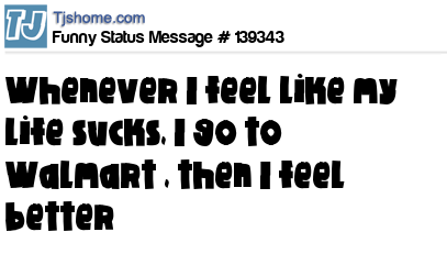 X says Whenever I feel like my life sucks, I go to Walmart , then I feel better