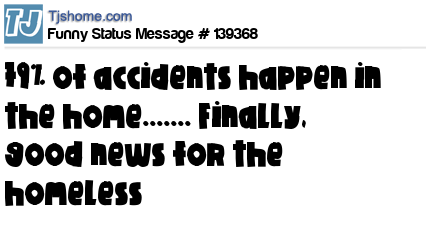- # 42270 79% of accidents happen in the home.... Finally, good news for the homeless....