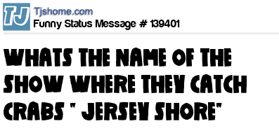 - # 86461 My friend asked me today what the name of the show is where they go fishing and catch all the crabs..I said "Jersey Shore"...Was I wrong?