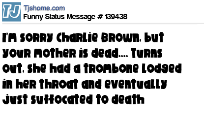 X I'm sorry Charlie Brown, but your mother is dead.... Turns out, she had a trombone lodged in her throat and eventually just suffocated to death