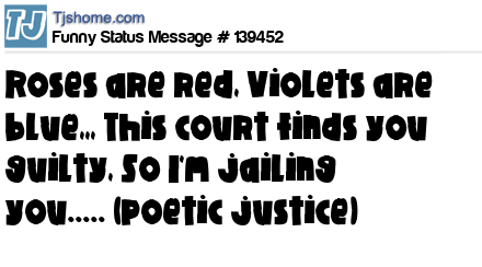 X Roses are red, Violets are blue,,, This court finds you guilty, So I'm jailing you..... (poetic justice)