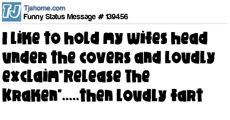 X says I like to hold my wifes head under the covers and loudly exclaim"Release The Kraken".....then loudly fart