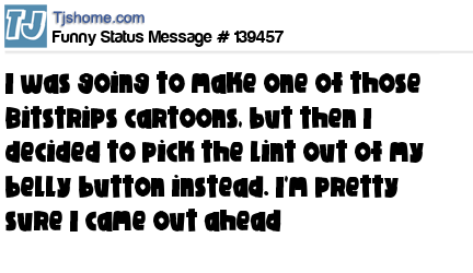 X I was going to make one of those Bitstrips cartoons, but then I decided to pick the lint out of my belly button instead. I'm pretty sure I came out ahead ツ