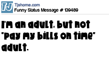 - # 178251 "Can't adult today". That's cute 22 year old. Get a mortgage, manage a 401k, have a couple kids, then get back to me about being an adult.
