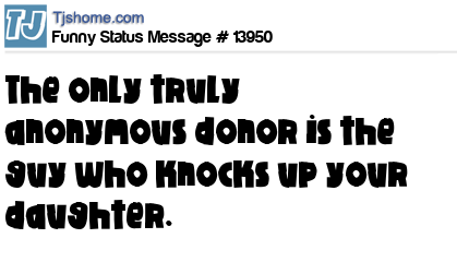 - # 181370 The only true anonymous donor is the guy who knocked up your daughter.
