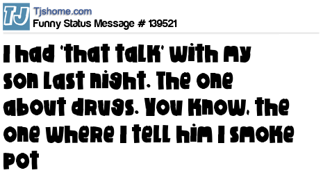 X says I had 'that talk' with my son last night. The one about drugs. You know, the one where I tell him I smoke pot