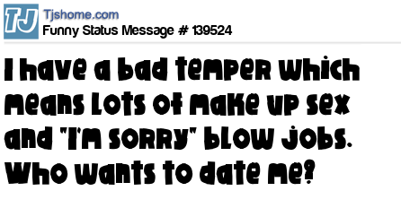 X says I have a bad temper which means lots of make up sex and "I'm sorry" blow jobs. Who wants to date me?