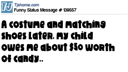 X says A costume and matching shoes later, my child owes me about $50 worth of candy..