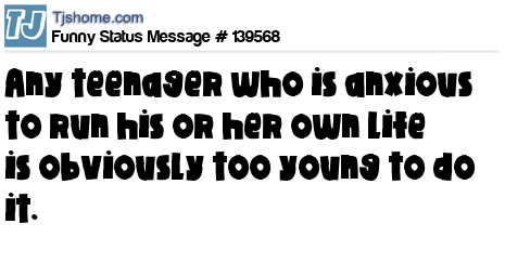 X Any teenager who is anxious to run his or her own life is obviously too young to do it.