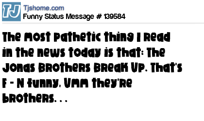 X says The most pathetic thing I read in the news today is that: The Jonas Brothers Break Up. That's F - N funny, Umm they're brothers. . .