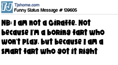 X says NB: I am not a Giraffe. Not because I'm a boring fart who won't play, but because I am a smart fart who got it right