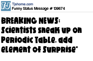 X BREAKING NEWS: Scientists sneak up on Periodic Table, add element of Surprise"