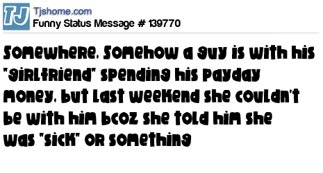 X says Somewhere, Somehow a guy is with his "girlfriend" spending his payday money, but last weekend she couldn't be with him bcoz she told him she was "sick" or something