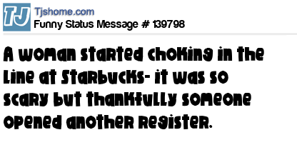 - # 181360 A woman started choking in the lineup at Starbucks- it was so scary but thankfully someone opened another register.