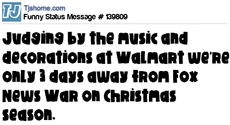 X says Judging by the music and decorations at Walmart we're only 3 days away from Fox News War on Christmas season.