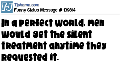 X says In a perfect world, men would get the silent treatment anytime they requested it.