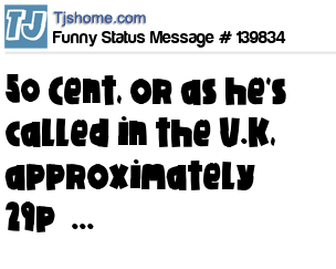 X says 50 Cent, or as he's called in the U.K, approximately 29p ...