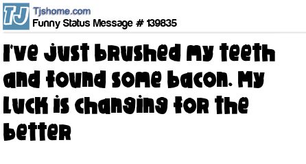 X says I've just brushed my teeth and found some bacon. My luck is changing for the better