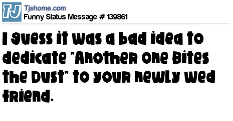 X says I guess it was a bad idea to dedicate "Another One Bites the Dust" to your newly wed friend.