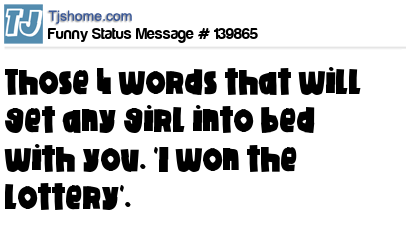- # 139885 "Those 4 words that will get any girl into bed with you. 'I won the lottery'." This recipe is for poor girls.